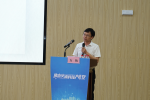 交通运输事务中心彭建波总工程师代表领导嘉宾讲话。他充分肯定了学会九届理事会成立以来的工作成绩,勉励学会干实事、谋实招、求实效;补素质短板,强能力弱项,比学赶帮,赛龙夺锦;在奋力加快建设交通强国、强省、强市的宏伟征程中奋力前行,为谱写交通科技创新的新篇章,展现新作为、取得新成效、作出新贡献。
