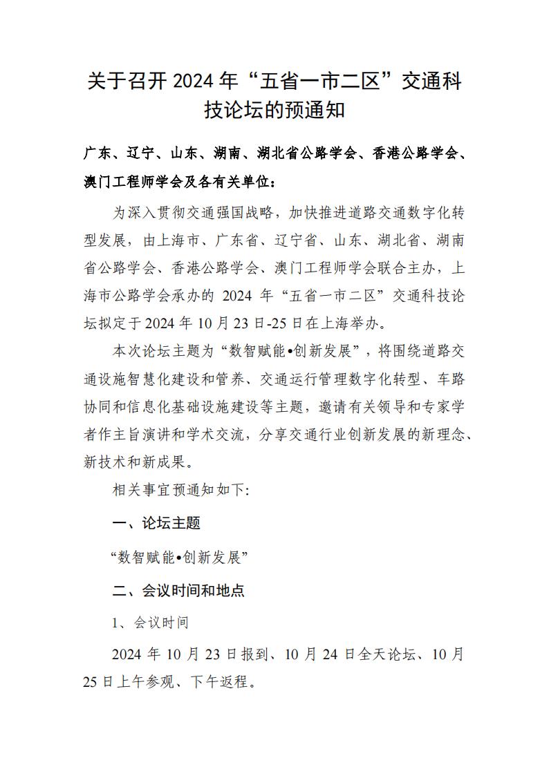 转发|关于征集2024年“五省一市二区交通科技论坛论文”的通知