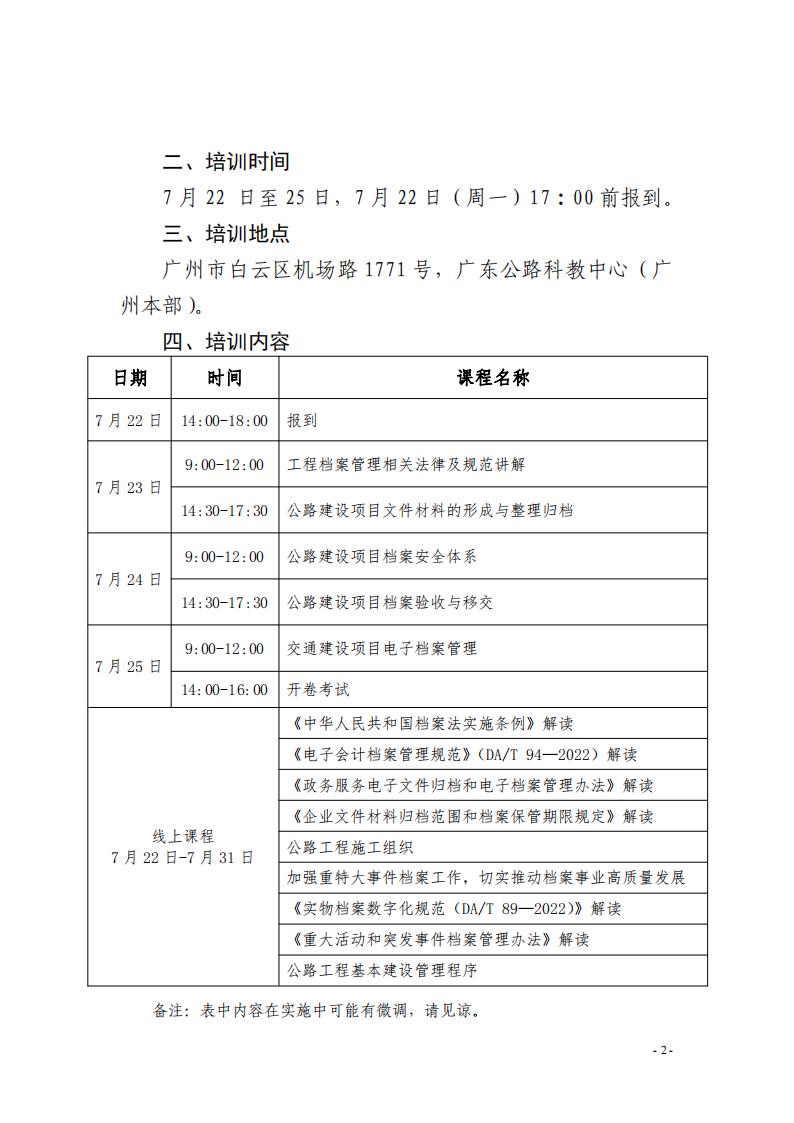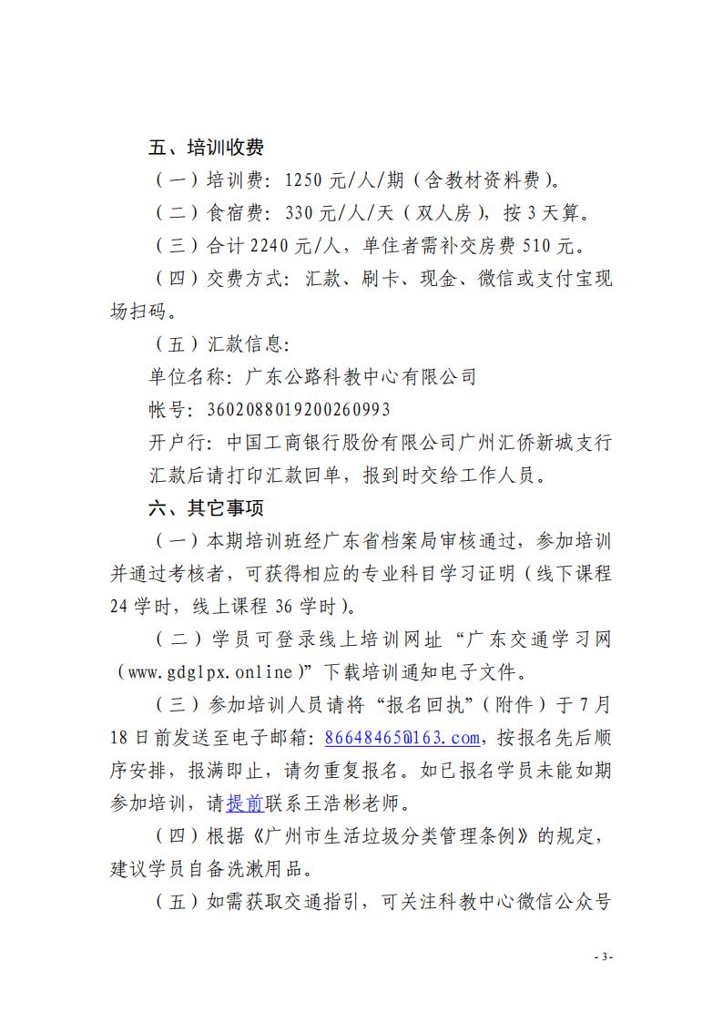 转发广东省公路学会 广东公路科教中心有限公司《关于举办2024年交通建设项目档案工作人员继续教育培训班的通知》
